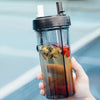 AquaBelle Luxe Bouteille d'Eau à Double Compartiment | Gobelet à Double Pailles Élégant et Portable pour Étudiants et Amateurs de Sports en Plein Air