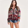 Veste en Jean Vintage Aztec avec Col – Doublée en Laine, Coupe Ample, Manches Longues pour un Style Streetwear Tendance