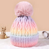 Bonnet Lana Arc-en-Ciel pour Filles - Chapeau Tricoté avec Pompon et Matériau Épais pour l'Hiver