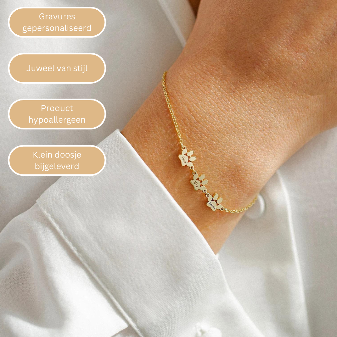 Il n'y a rien de plus réconfortant que de penser à vos animaux de compagnie, même lorsque vous n'êtes pas avec eux. Avec PawEmbrace, vous portez toujours leur nom sur vous. Le bracelet peut être gravé avec jusqu'à 6 noms, dates ou mots spéciaux, pour que vous sentiez toujours vos animaux de compagnie près de vous.